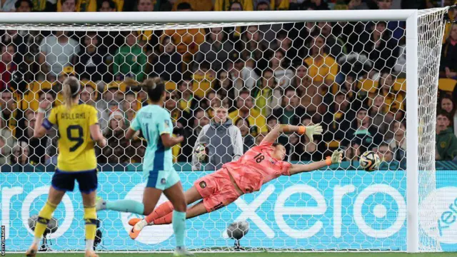 Ku munota wa 30 w'igice cya mbere, rutahizamu Fridolina Rolfo yari yinjije igitego cya mbere cya Sweden kuri penaliti ku kibuga Brisbane Stadium.
