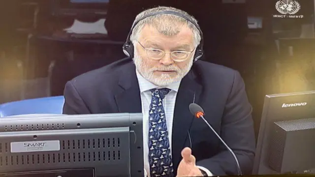 Kabuga, wari ukurikiye iri bazwa ari kuri gereza y'urukiko, nta kanya yahawe ko kuvuga ku buhamya bw'iyi nzobere. Mu gihe cyashize, Kabuga yahakanye ibyaha bya jenoside aregwa.