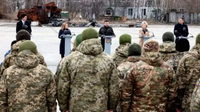 Mu guhimbaza imyaka ibiri iheze kuva Uburusiya butanguje intambara yeruye kuri Ukraine, abategetsi batari bake b’ibihugu vy’Uburengero bafashe urugendo rubashikana muri Ukraine kuri uno wa gatandatu mu ntumbero yo gushigikira Perezida Volodymyr Zelensky.