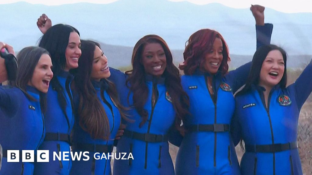 Umuririmvyi karuhariwe wo mu mudiho wa Pop Katy Perry ari kumwe n'abandi bagore batanu bagarutse kw'Isi ata nkomanzi inyuma y'urugendo rwabo rugufi mu kirere bari mu kigendajuru c'ikompanyi Blue Origin ya Jeff Bezos.