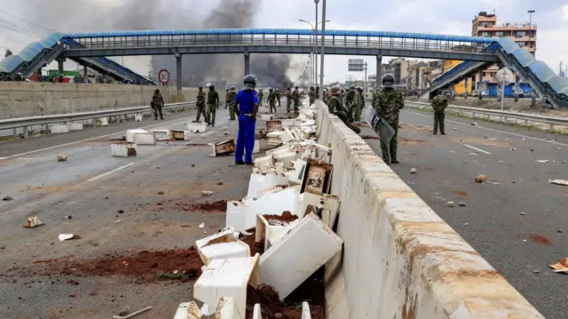 Ahitwa Mlolongo ku muhanda mugari wa Mombasa Road werekeza iburasirazuba, abigaragambya biraye aho umuhanda mushya kandi ugezweho uzwi nka Express Way utangirira bangiza ibikorwaremezo byawo mu buryo bukomeye.