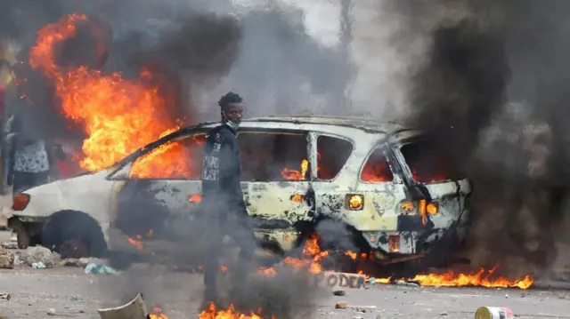 Ejo ku wa mbere, abigaragambya bumvikanye batera hejuru bavuga izina rye, batwika imipine y'imodoka, bafunga imihanda ndetse batera amabuye abapolisi. Abashinzwe umutekano babasubije n'imyuka iryana mu maso.