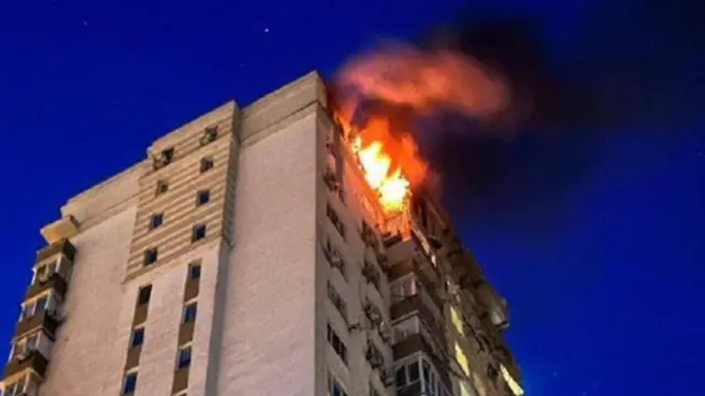 Ubutegetsi bwa gisirikare bw'umujyi wa Kyiv bwatangaje ko inyubako eshatu zahiye muri iki gitero kindi cya nijoro cyo mu kirere.