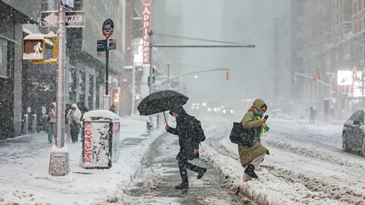 Umuyaga ukomeye wibasiye inkombe z'iburasirazuba bwa Amerika kuri uyu wa Mbere, uzana urubura rwinshi rwaciye agahigo mu mateka, bituma ubuzima bwa miliyoni z'abantu buhungabana ndetse ibihumbi by'ingendo z'indege bihagarikwa.
