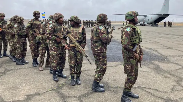 Izi ngabo za Kenya zirasangayo ikiciro cya mbere cyazo cyahageze muri weekend ishize, nk'uko umunyamakuru wa BBC uri aho zahagurukiye abivuga.