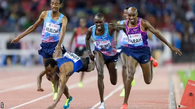 Umunyamerika Paul Chelimo yabaye uwa kabiri, inyuma y'aho Edris, yari yatsinze Farah mu nkino za Londres mu 2017, yikubitiye hasi ashaka kujabuka umurongo wa nyuma.