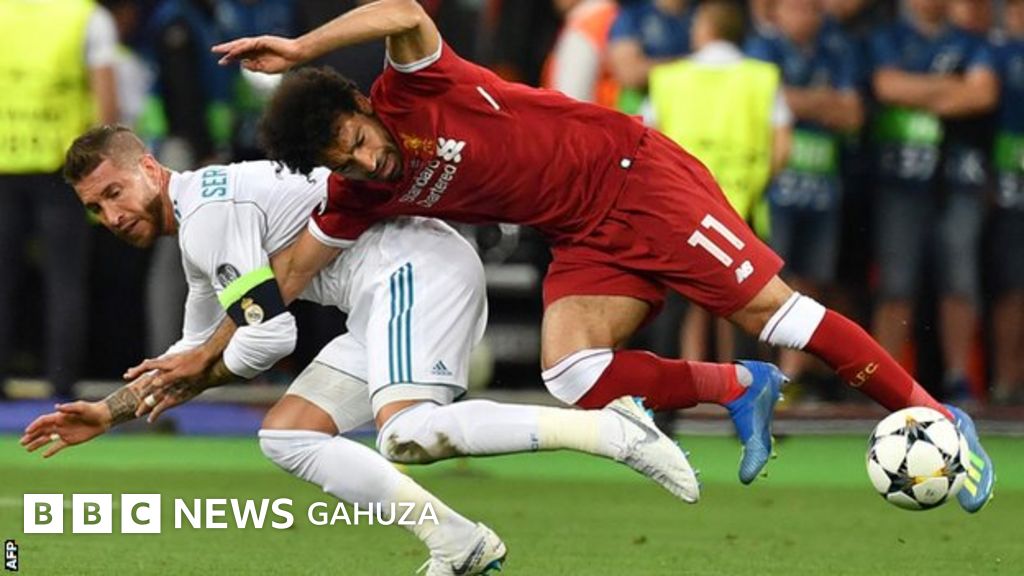 Salah yavuye mu kibuga arira inyuma yaho umukinyi kizigenza wa Real, Sergio Ramos amugwishije hasi mu rukino Liverpool yatsinzwemwo 3-1.