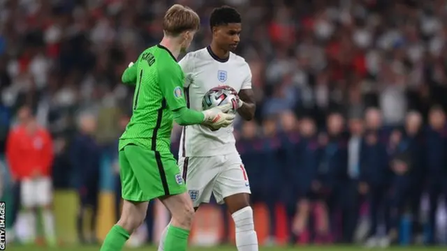 Rutahizamu w'Ubwongereza na Manchester United Marcus Rashford yasabye imbabazi abafana kubera guhusha penaliti ariko avuga ko "nta na rimwe nzasaba imbabazi z'uwo ndi we", nyuma yuko abaye umwe mu bakinnyi batatu bakorewe irondaruhu.