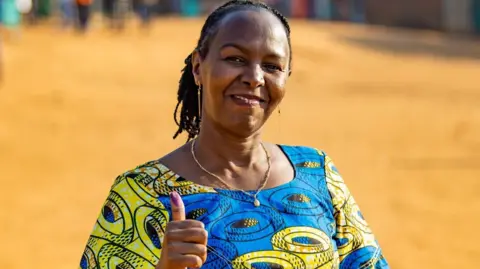 Shadia Umutesi yabwiye BBC ko yishimiye cyane kuzinduka agatora mu ba mbere kuri site y'itora ya Remera Protestant.