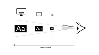 This led to some of our more mathematically minded colleagues to hypothesize a recommended font size based on an average viewing distance, and subtended angle of a device from the eye.