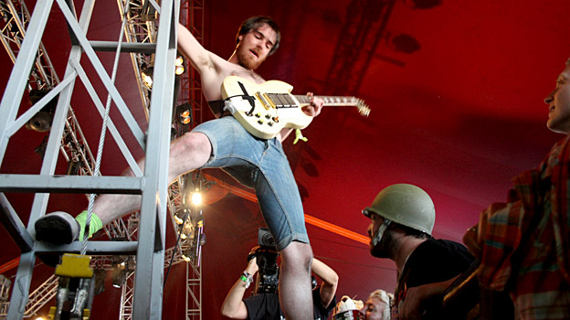 This high-powered Leeds four-piece make music in its rawest form. Having destroyed the BBC Introducing stage at Reading and Leeds 2008, they have gone on to support Biffy Clyro and garner a huge fan base from their unbelievable live energy. Their jaw-dropping, crowd-surfing, speaker-climbing set at Glastonbury confirmed them as one of the finest British live acts around.