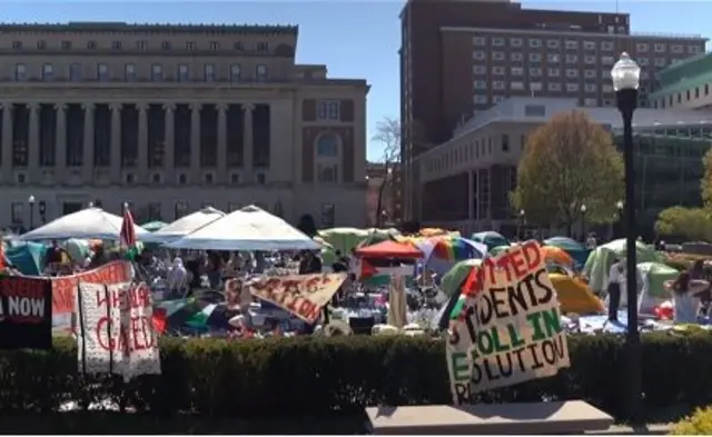કોલંબિયા યુનિવર્સિટીનું કૅમ્પસ મંગળવાર બપોર સુધી શાંત હતું. કારણ કે સેંકડો કાર્યકર્તાઓએ યુનિવર્સિટીની લૉનમાં તંબુ લગાડ્યા હતા.