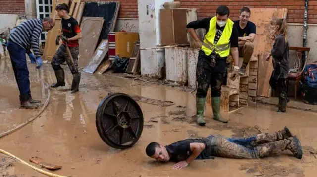 વેલેંસિયા શહેરના મધ્યમાં આવેલી સંગ્રહાલયની ઇમારતમાં મોટી સંખ્યામાં સ્વયંસેવકો ડોલ, પોતું, ભોજન અને પાણીની સામગ્રી લેવાં માટે કતારમાં હતાં.