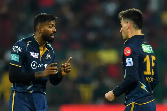 હાર્દિક પંડ્યા તેમના નવા બૉલર નાલકન્ડેને સમજાવતા નજરે પડ્યા પરંતુ નાલકન્ડેની એ જ ઓવરમાં કુલ 14 રન નોંધાયા હતા, અને ગાયકવાડ જેને 4 રને જીવનદાન મળ્યું હતું તે સ્કોરબોર્ડ પર 60 રન નોંધાવી આઉટ થયા હતા. અને આખરે જ્યારે મંગળવારની મૅચનું પરિણામ આવ્યું ત્યારે ગુજરાત ટાઇટન્સ 15 રને હારી ગયું હતું.