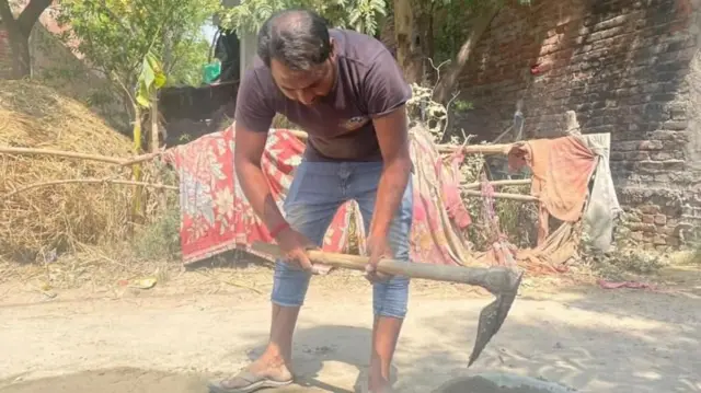 આ યુવાનો પૈકીના એક છે અજિતસિંહ, જ્યારે અમે તેમને મળવા માટે જગદીશપુર પહોંચ્યા તો તેઓ નિર્માણાધિન મકાન માટે મજૂરી કરતા જોવા મળ્યા.