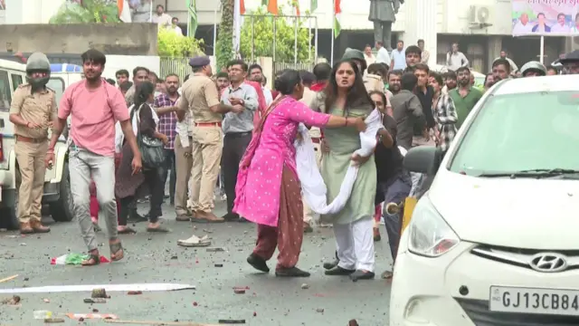 ગુજરાત કૉંગ્રેસના વિધાનસભાના નેતા અમિત ચાવડાએ બીબીસીના સહયોગી ભાર્ગવ પરીખ સાથેની વાતચીતમાં કહ્યું હતું, “રાહુલ ગાંધીએ લોકસભામાં આપેલા નિવેદનને તોડીમરોડીને ભાજપે ગુજરાતમાં અરાજકતા ફેલાવવાનો પ્રયાસ કર્યો છે. રાતના અંધારામાં ભાજપના કાર્યકરો અમારા નેતાની(રાહુલ ગાંધી) તસવીરની તોડફોડ કરી હતી. આ અંગે અમે સીસીટીવી ફૂટેજના આધારે પોલીસ ફરિયાદ નોંધાવા ગયા હતા ત્યારે એ જ સમયે ભાજપના કાર્યકર્તાઓએ અચાનક આવીને પ્રદેશ કાર્યાલય પર પોલીસની મંજૂરી વગર હુમલો કર્યો હતો.”