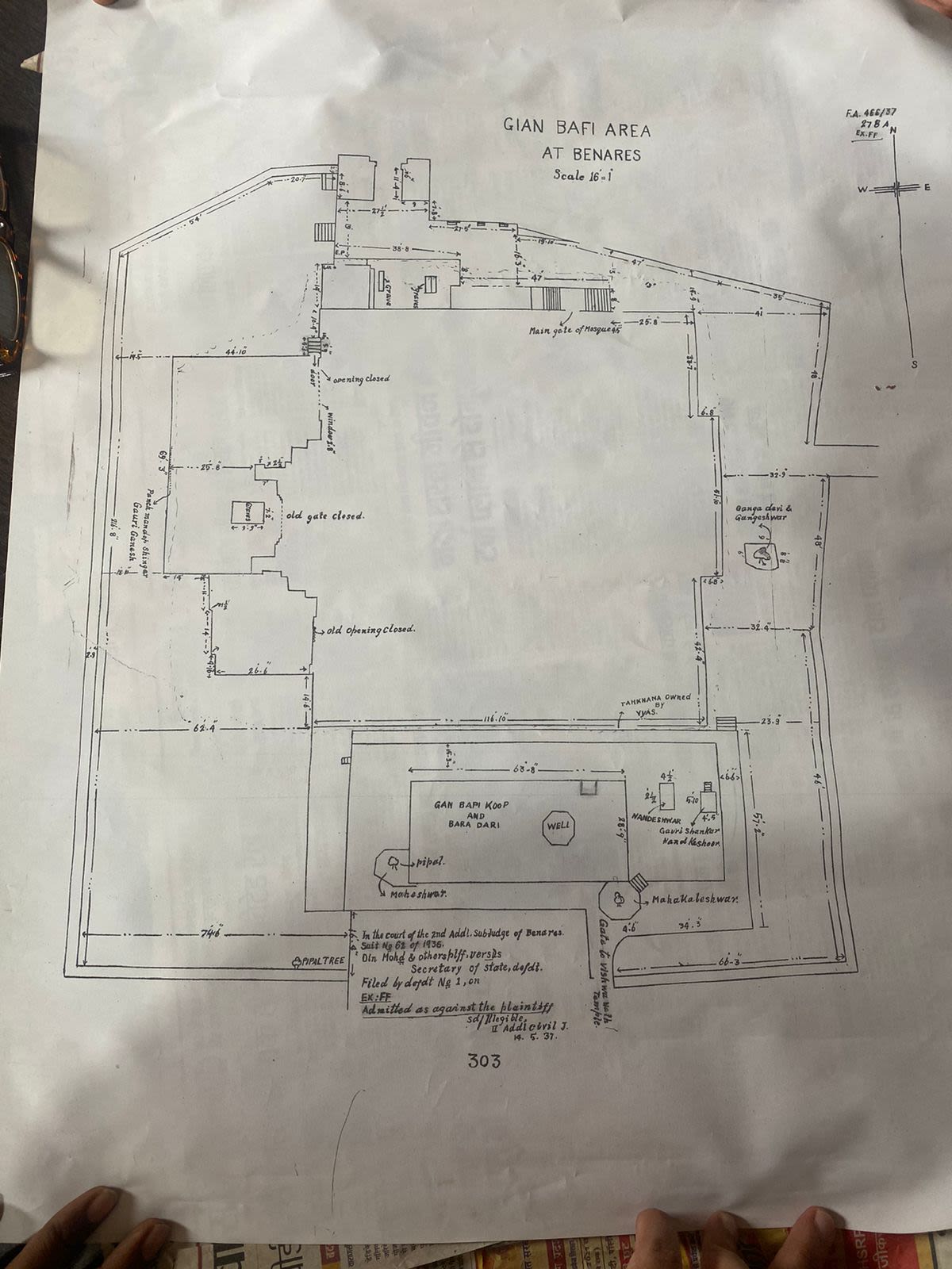આ નકશાની સરખામણી મસ્જિદપક્ષ તરફથી મુકાયેલા નકશા સાથે કરી શકાય છે. જ્ઞાનવાપીને મસ્જિદ સાબિત કરવા માટે 1942ના દીન મહમદ કેસના ચુકાદાનો આધાર લેવામાં આવ્યો છે.