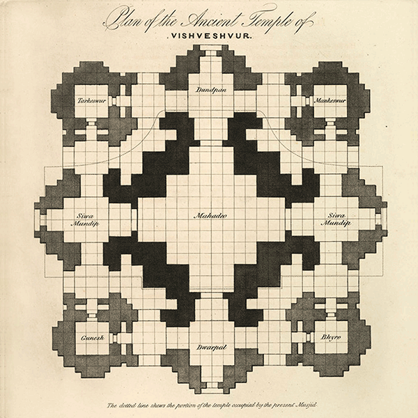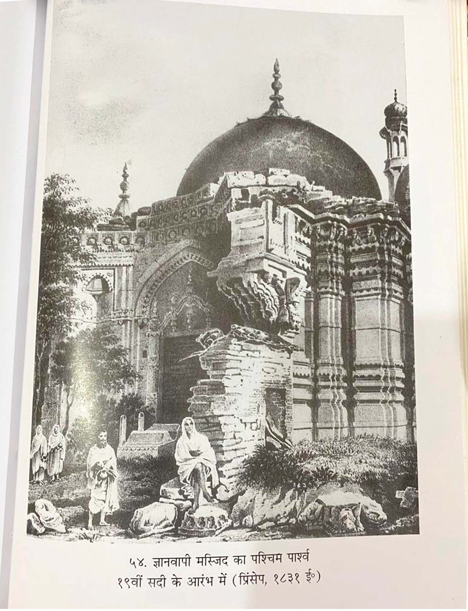 મંદિરપક્ષનું કહેવું છે કે 1822માં 'જર્નલ ઑફ એશિયાટિક સોસાયટી ઑફ બંગાલ'ના સંસ્થાપક સંપાદક જેમ્સ પ્રિન્સેપે પોતાના પુસ્તક 'બનારસ ઇલસ્ટ્રેટેડ'માં એક ચિત્ર 'ટેમ્પલ ઑફ વિશ્વેશ્વર' તરીકે આપ્યું છે, જેમાં જ્ઞાનવાપી મસ્જિદના પાછળના ભાગને દર્શાવાયો છે અને લખ્યું છે કે "મસ્જિદના ચબૂતરાને પ્રાચીન કાશી વિશ્વનાથ મંદિરના ચબૂતરા તરીકે હિન્દુઓ પૂજતા હતા."