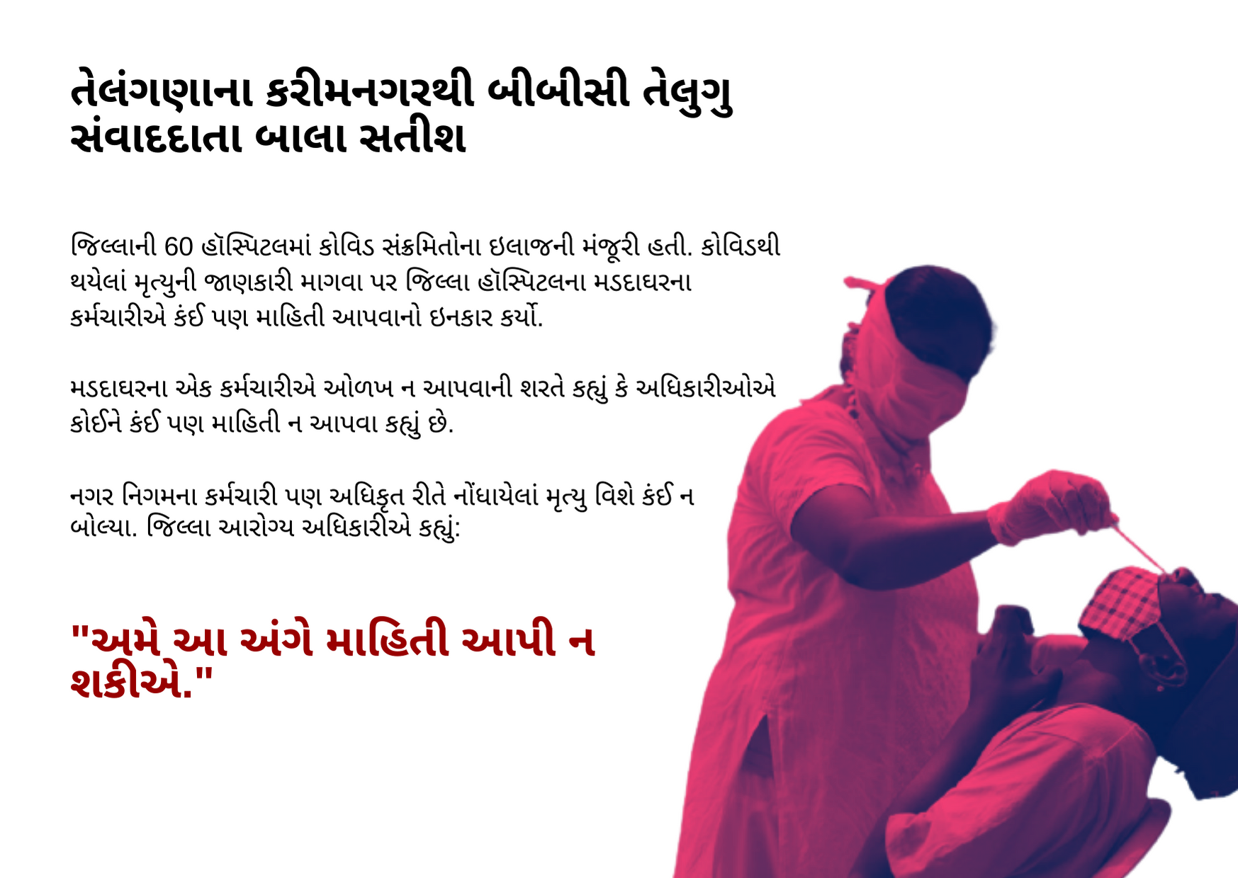 સમગ્ર ભારતમાંથી સાચું ચિત્ર મેળવવા માટે બીબીસીએ આંકડાઓની ઊંડાણપૂર્વક તપાસ કરી. અમે 12 શહેરોમાં સ્મશાનો, કબ્રસ્તાનો, હૉસ્પિટલો, કાર્યકરો અને અન્યોની મુલાકાત લીધી, જેથી પહેલી મેથી 15 મે સુધીના સત્તાવાર આંકડા અંગે સ્પષ્ટતા મેળવી શકાય.