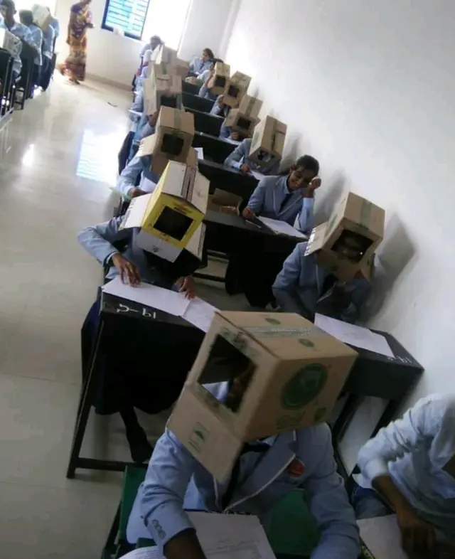 પરીક્ષામાં ચોરી અટકાવવાનો વિચિત્ર પ્રયોગ, વિદ્યાર્થીઓને માથે બોક્સ પહેરાવવામાં આવ્યાં