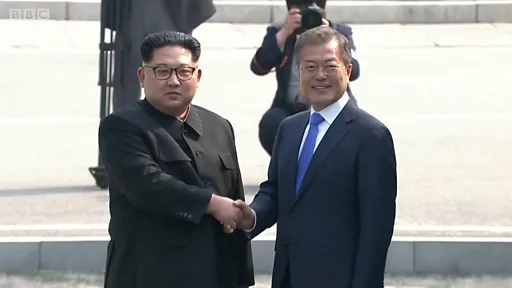 કિમ જોંગ-ઉન અને દક્ષિણ કોરિયાના રાષ્ટ્રપ્રમુખે પનપુનજોમમાં એકબીજા સાથે હાથ મિલાવ્યા. અને આ રીતે આ ઐતિહાસિક સંમેલનની શરૂઆત થઈ.