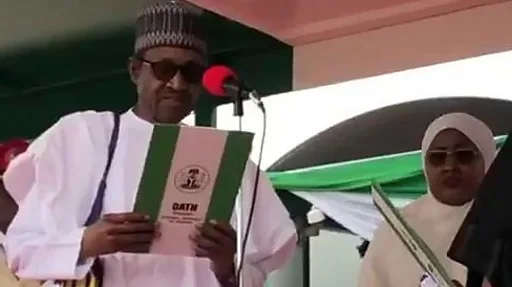 Shugaba Muhammadu Buhari rataye da gafakar Al-Kur'ani, ya sha rantsuwar yin gaskiya da adalci ga dukkanin 'yan Najeriya, inda ya rantse cewa zai aiki bisa gaskiya da rikon amana ba tare da nuna bambanci ba.