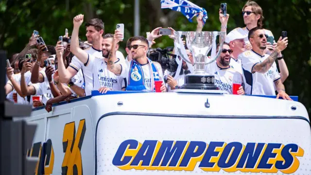 Ƴan wasan sun taru a hedikwatar Comunidad de Madrid daga nan suka nufi katafaren filin da ake kira Madrid fountain, wurin da dubban magoya baya suka taru.
