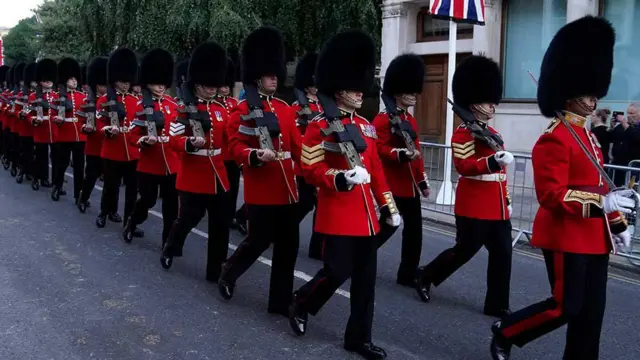 Sojojin Grenadier Guards ne za su take mata baya, da dakarun tsaron Sarki da wani bangare na sojojin Gentlemen at Arms, da na Yeomen na kamfanin sojin masarauta na Archers.