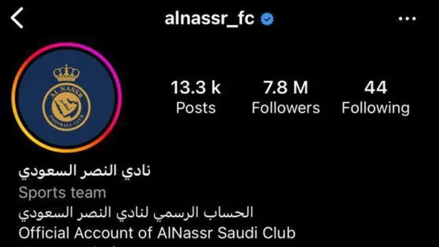 Gabanin neman da aka yi masa, kungiyar Al-Nassr na da magoya baya kimanin dubu 860, amma da sanarwar komawarsa kungiyar sai magoya bayanta suka karu cikin sa'o'i kalilan.