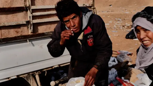 Su riƙa bincike cikin sharar da ake zubarwa a baƙaƙen ledoji, a nan Amer ɗan shekara 15 ke samun naman kazar da aka ci aka rage.