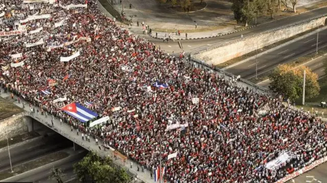 Biki ne dai wanda a bisa al'ada dubban ma'aikatan gwamnati ke gangami da maci da ake gudanarwa a dandalin Juyin-juya-hali na Revolution Square a babban birnin kasar, Havana.