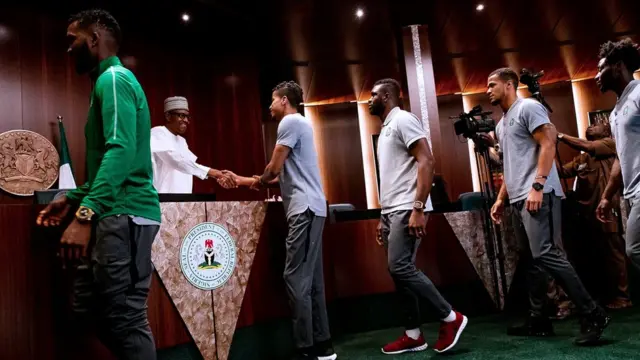 Shugaban Najeriya ya gana da tawagar Super Eagles a fadarsa a Abuja inda ya ma su bankwana a yayin da suke shirin barin kasar zuwa gasar cin kofin duniya a Rasha.