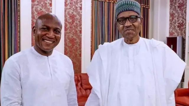 Shugaba Muhammadu Buhari na Najeriya ta dan takarar gwamna na jam'iyyar APC a jihar Bayelsa murnar lashe zaben da aka gudanar ranar Asabar dinnan.