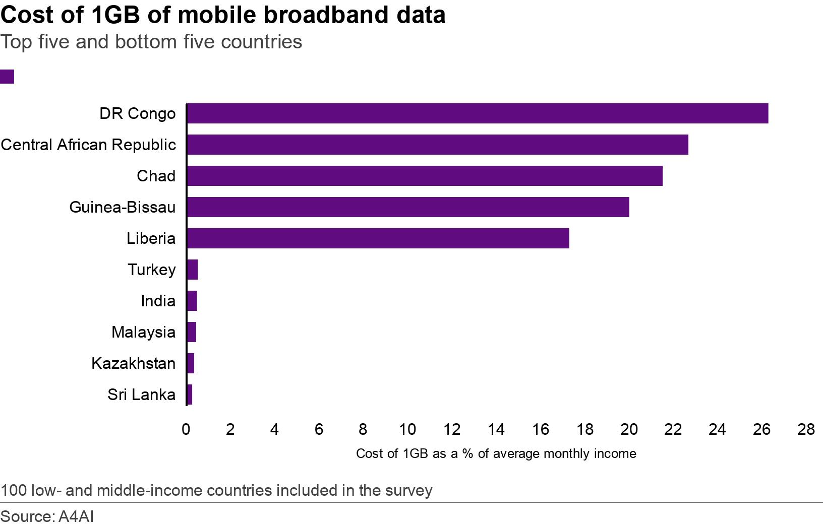Jamhuriyar Dimukradiyyar Congo na daga cikin kasashen duniya da intanet ke da matukar tsada, kamar yadda rahoton gamayyar kungiyoyin da ke rajin saukaka kudin intanet ta fitar a shekarar nan.