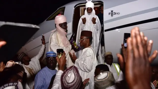 Sarki Sanusi ya bar kauyen Awe a jihar Nasarawa tare da rakiyar gwamnan jihar Kaduna Malam Nasir El Rufa'I wanda ya raka shi har kofar jirgin da ya shiga zuwa Legas a Abuja.