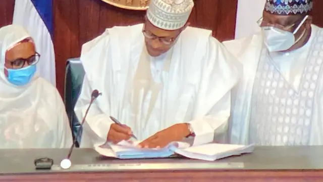 Buhari ya saka hannu kan dokar ne ranar Juma'a a yayin wani takaitaccen buki a fadarsa a gaban idon Shugaban majalisar dattawa da na majalisar wakilan kasar.