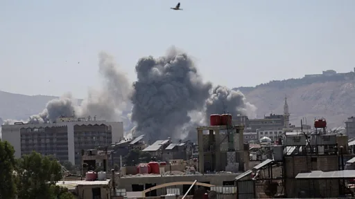 An ga hayaki na tashi daga tsakiyar birnin Damascus, babban birnin Siriya bayan harin da Isra'ila ta kai.