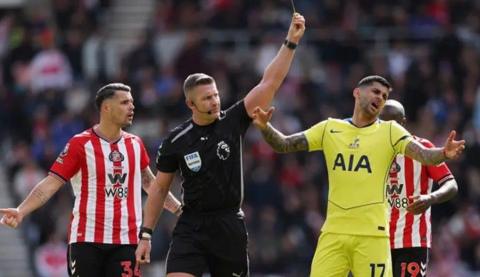 Ruwan sama da ake yi ya sa fili yana da santsi, kuma an bai wa Alexis Mac Allister katin gargaɗi bayan ya yi sulu ya kwashe ɗan wasan PSG.