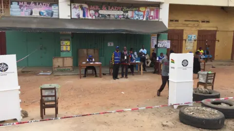 Jami'an zabe na taimakawa masu kada kuri'a hawa kan layi da bin ka'ida a wata mazaba da wakilin BBC Akweasi Sarpong ya ziyarta a birnin Accra: