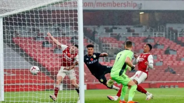 Dan kwallon Arsenal, Bukayo Saka ne ya fara cin gida, bayan da dan wasan Villa, Matt Targett ya buga kwallo zuwa gidan Gunners.