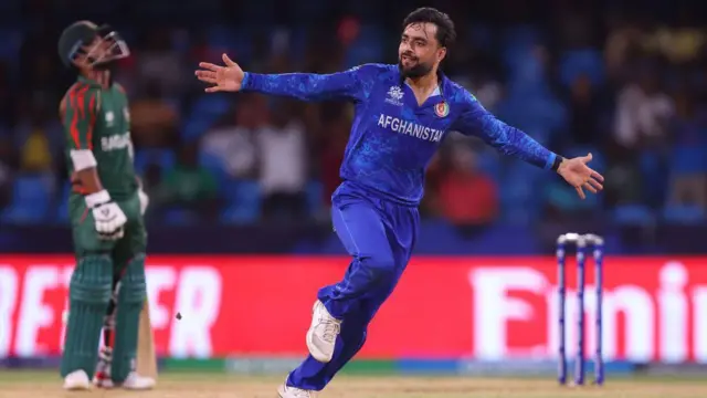 आईसीसी टी20 विश्वकप के सुपर 8 के मुक़ाबले में अफ़ग़ानिस्तान ने बांग्लादेश को आठ रन से हरा कर टूर्नामेंट के सेमीफाइनल में एंट्री कर ली है.
