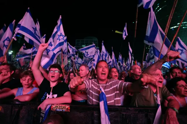 इसराइल में साल के शुरूआत से ही हज़ारों लोग सरकार विरोधी रैलियों और प्रदर्शन का हिस्सा बन रहे हैं. ये प्रदर्शन देश की धुर दक्षिणपंथी सरकार के ख़िलाफ़ है जो न्याय प्रणाली में बदलाव लाना चाहती है.