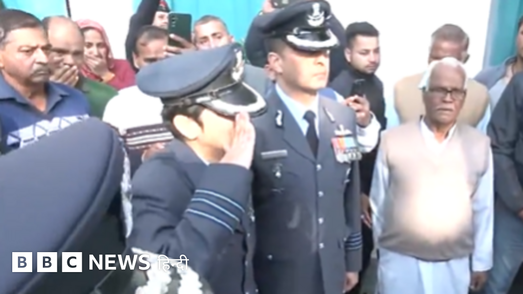 नमांश स्याल की पत्नी और विंग कमांडर अफ़शां स्याल, एयरफोर्स की वर्दी पहनकर अंतिम यात्रा में पहुंचीं. उन्होंने सैन्य सम्मान के साथ अपने पति को अंतिम सलामी दी.