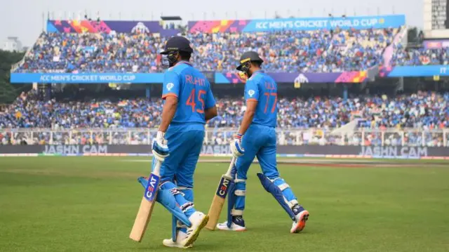 इमेज कैप्शन, कप्तान रोहित शर्मा और शुभमन गिल की ओपनिंग जोड़ी ने भारत को तेज़ शुरुआत दिलाई. इन दोनों ने 4.3 ओवर में ही भारत का स्कोर 50 रन के पार पहुंचा दिया.