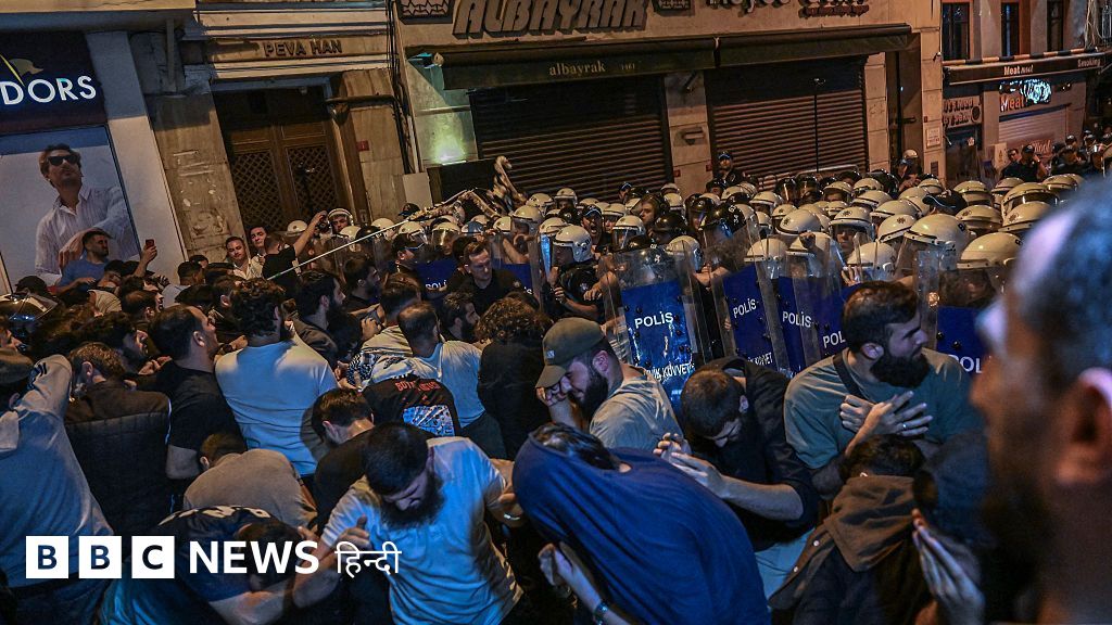 सोमवार को इस्तांबुल में रॉयट पुलिस तैनात की गई क्योंकि सैकड़ों लोगों ने पब्लिकेशन के ख़िलाफ़ प्रदर्शन किया.