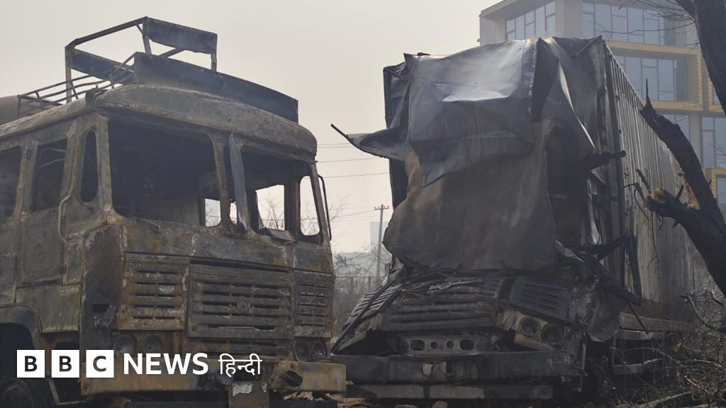 जली हुई गाड़ियों में बस, कंटेनर और कार भी शामिल हैं.