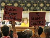 आर्थिक पैकेज को लेकर चल रही चर्चा का आलम ये था कि प्रतिनिधि सभा में अमरीका के वित्त मंत्री हेनरी पॉलसन एक बार तो क़रीब-क़रीब अपने घुटनों पर झुक गए और सदन में डेमोक्रेटिक पार्टी की नेता नैन्सी पेलोसी से मदद की गुज़ारिश करने लगे. लेकिन आर्थिक पैकेज पर चर्चा को उस समय तगड़ा झटका लगा जब रिपब्लिकन सांसदों के एक ग्रुप ने योजना के सिद्धांत पर ही सवाल उठा दिया. शुक्रवार को एक बार फिर कांग्रेस की बैठक में आर्थिक पैकेज पर सहमति बनाने की कोशिश की जाएगी. रिपब्लिकन पार्टी के सदस्य जो इस पैकेज का विरोध कर रहे हैं, उनकी चिंता इतने बड़े पैकेज पर है. वे इस पर भी चिंतित है कि इस पैकेज के कारण सरकार वित्तीय सेक्टर में प्रवेश कर रही है. वे चाहते हैं कि सरकार एक बीमा नीति लेकर आए. | इससे जुड़ी ख़बरें क़रार के बाद कारोबार की तैयारी24 सितंबर, 2008 | कारोबार बहस स्थगित करने पर मतभेद उभरे24 सितंबर, 2008 | कारोबार आर्थिक पैकेज को लेकर कांग्रेस में विरोध 24 सितंबर, 2008 | कारोबार आर्थिक पैकेज में देर न करें: पॉलसन23 सितंबर, 2008 | कारोबार गूगल देगा आईफ़ोन को टक्कर23 सितंबर, 2008 | कारोबार 'मॉर्गन स्टेनली कुछ हिस्सेदारी बेचेगा'22 सितंबर, 2008 | कारोबार वित्तीय बाज़ारों में अनिश्चितता का दौर22 सितंबर, 2008 | कारोबार दो बड़े बैंको ने किए अहम बदलाव 22 सितंबर, 2008 | कारोबार इंटरनेट लिंक्स बीबीसी बाहरी वेबसाइट की विषय सामग्री के लिए ज़िम्मेदार नहीं है. | |||||||||||||||||||||||||||||||||||||||||||||||||||||||||||||||||||||||||||||||||||||||||||||