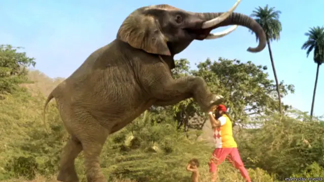 फ़िल्म में अपने स्टंट्स की हॉलीवुड से बराबरी करते हुए वे कहते है "जब हीरो हवाई जहाज़ को चिड़िया की तरह रोक कर ज़मीन पर रख सकता है (सुपरमैन), एक्सप्रेस ट्रेन को हाथ से रोक सकता है (स्पाइडरमैन ) तो हम तो सिर्फ़ हाथी को उठाकर ही रख रहे है. ये तो फ़िल्मी दुनिया है हमें नहीं लगता कि ये कोई बड़ी चीज़ हैं."