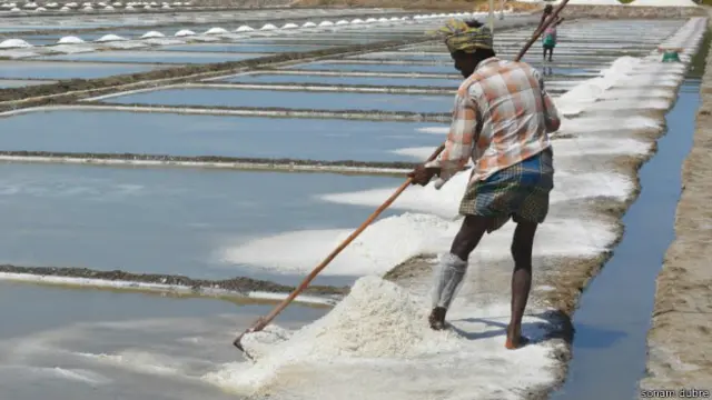 तमिलनाडु के वेदरनयम गांव में नमक बनाने वाले मज़दूरों को आठ से नौ घंटे की मज़दूरी के दौरान पेशाब करने की इजाज़त नहीं मिलती क्योंकि पेशाब के नमक में मिल जाने का ख़तरा रहता है.
