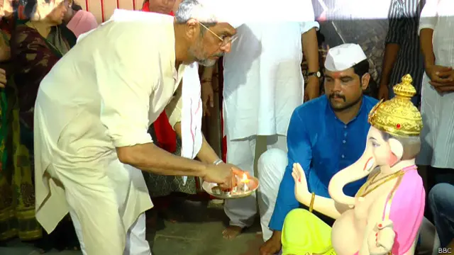 अभिनेता नाना पाटेकर ने गुरुवार को घर पर गणपति की स्थापना की. हाल ही में सूखे से जूझ रहे महाराष्ट्र के किसानों की मदद के लिए नाना पाटेकर आगे आऐ थे.